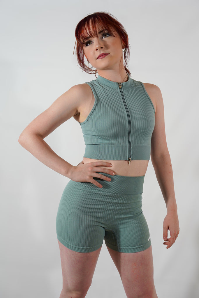Sculpter, lisser, bouger. Ce top sans manches enveloppe le buste d’une maille seamless (sans coutures) qui répartit la compression de façon régulière : aucun frottement, aucune marque, juste une tenue propre qui accompagne chaque geste. Les épaules sont totalement libres, la ligne reste nette quand l’intensité monte. Tu l’enfiles, tout se met en place.