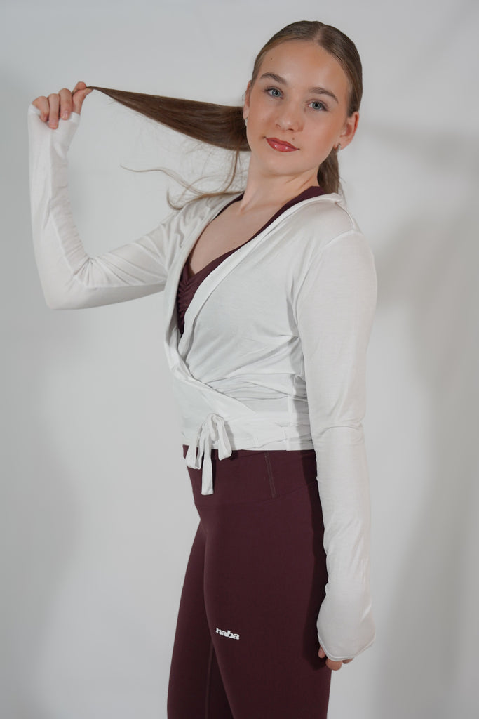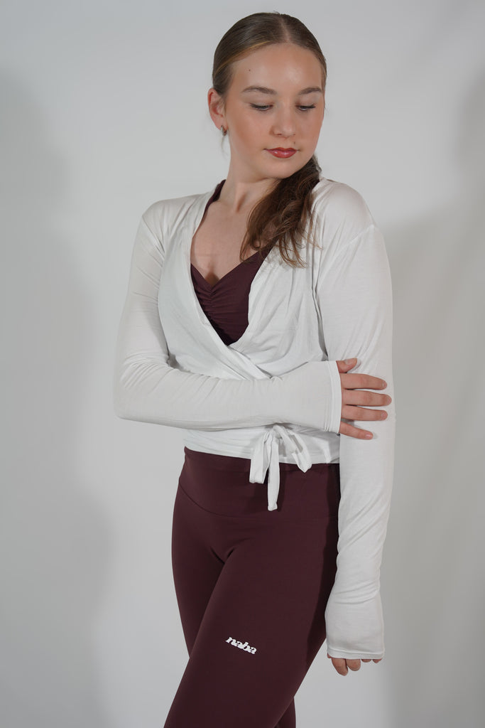 Le cache-cœur ballerina est la couche d’échauffement facile : on le noue en deux secondes, il garde les épaules au chaud sans alourdir et donne immédiatement une ligne danseuse. Léger, souple et flatteur, il se pose sur une brassière ou un débardeur et te laisse toute l’amplitude pour travailler.