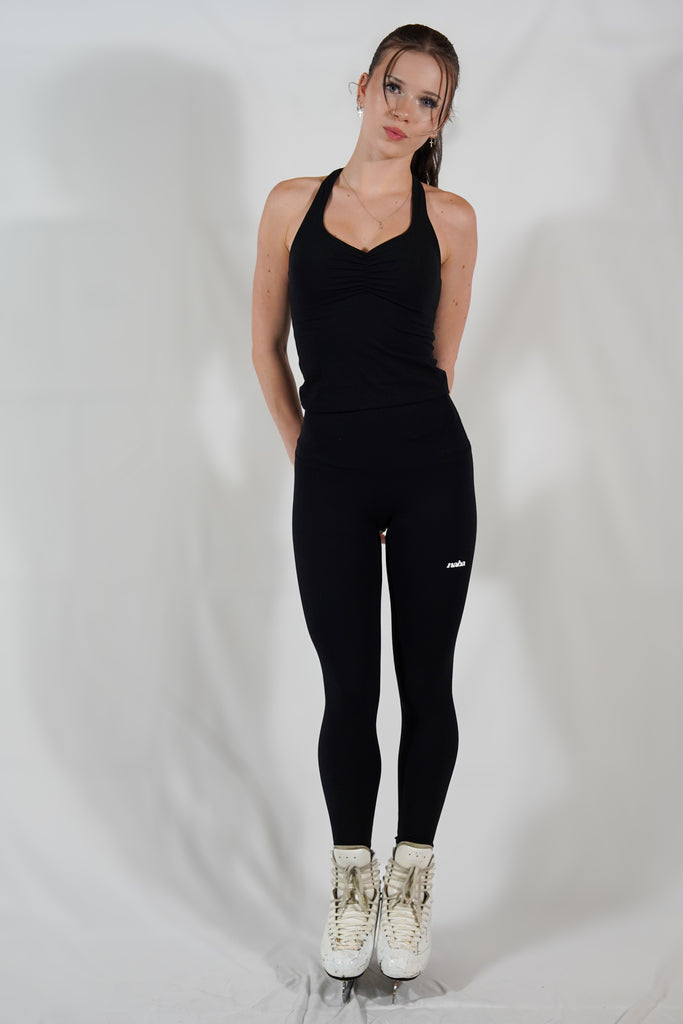 Le legging qui te laisse travailler sans y penser. Sa taille haute met en valeur la taille et s’accorde parfaitement avec une brassière ou un petit crop top. Le tissu doux suit l’amplitude sans tirer, la ligne s’allonge jusqu’à la cheville, rien qui serre, rien qui frotte, juste du confort qui tient.
