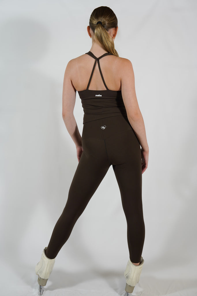 Le legging qui te laisse travailler sans y penser. Sa taille haute met en valeur la taille et s’accorde parfaitement avec une brassière ou un petit crop top. Le tissu doux suit l’amplitude sans tirer, la ligne s’allonge jusqu’à la cheville, rien qui serre, rien qui frotte, juste du confort qui tient.