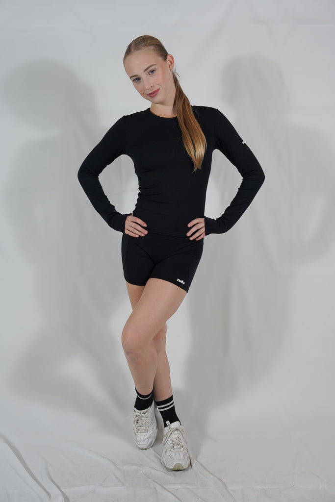 Le top manches longues Essentielle est la pièce élégante et polyvalente qu’aucune patineuse chic ne devrait manquer. Sa coupe ajustée met en valeur la silhouette tout en offrant une couvrance idéale.