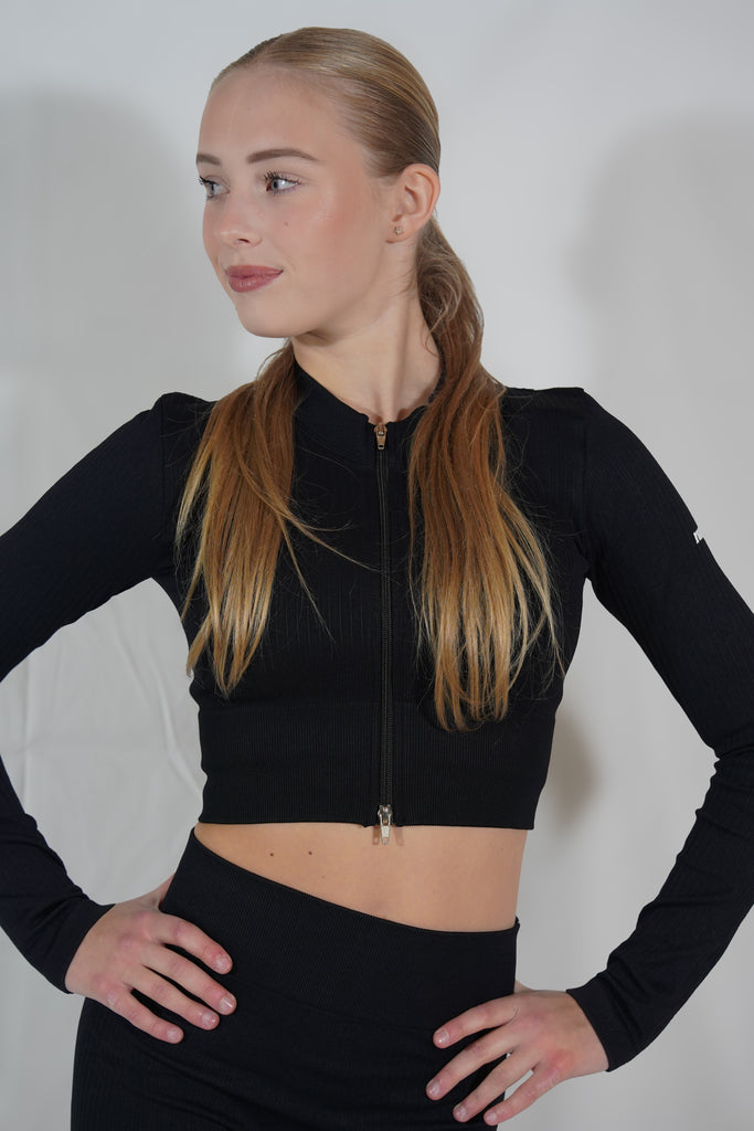 Parce qu’il s’adapte à ta séance. Tu le portes en petite veste zippée par-dessus l’échauffement, ou en top fermédirectement sur la brassière. Qu’il se superpose ou se porte seul, il apporte une chaleur légère et conserve une ligne nette. La maille sans coutures (seamless) suit le mouvement : douce, régulière, elle s’oublie dès que tu t’élances sur la glace.