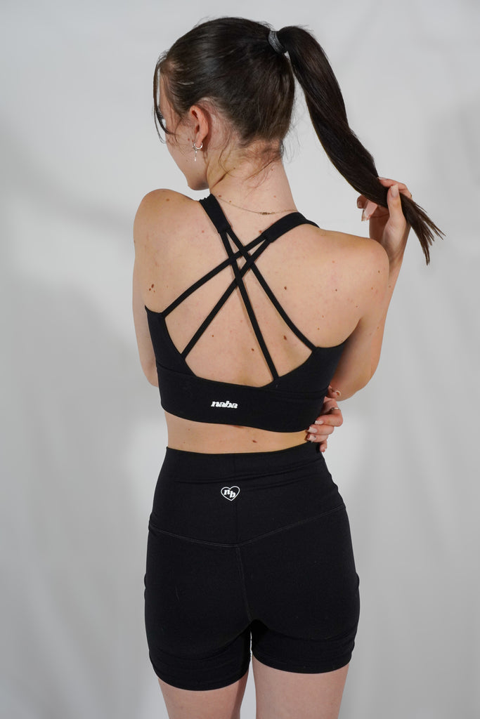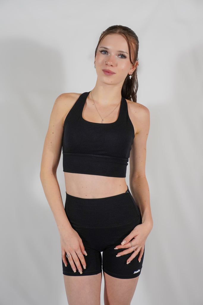 Ultra-douce et seconde peau, cette brassière se fait oublier dès qu’on l’enfile. Les quatre bretelles fines répartissent la tenue sans tirer sur les épaules ; tout reste souple, fluide, confortable — avec un maintien posé grâce à une bande sous-poitrine stable qui ne remonte pas quand le rythme s’accélère. Résultat : confort cocon et maintien suffisant pour enchaîner les sauts.